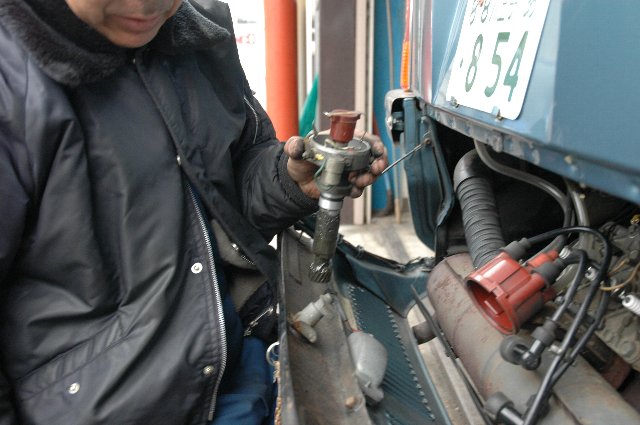 紹介していただいたハヤブサオートサービスに車持ち込んできました デスビを引き抜いて洗浄して、私が持っていた予備のポイントに交換してもらいました。 組み立て後、エンジンがなかなかかからなくて調べたら、交換したポイントの接点に皮膜が出来ていて火花が飛ばなかったとか。