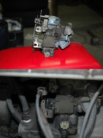 実は、今日の作業の最後にキャブの点検をしてくれて、「このネジを回してもアイドリングが変化しないのはキャブの中が詰まっている」ということで、予備にとって有ったキャブをオーバーホールの為に渡しておきました。